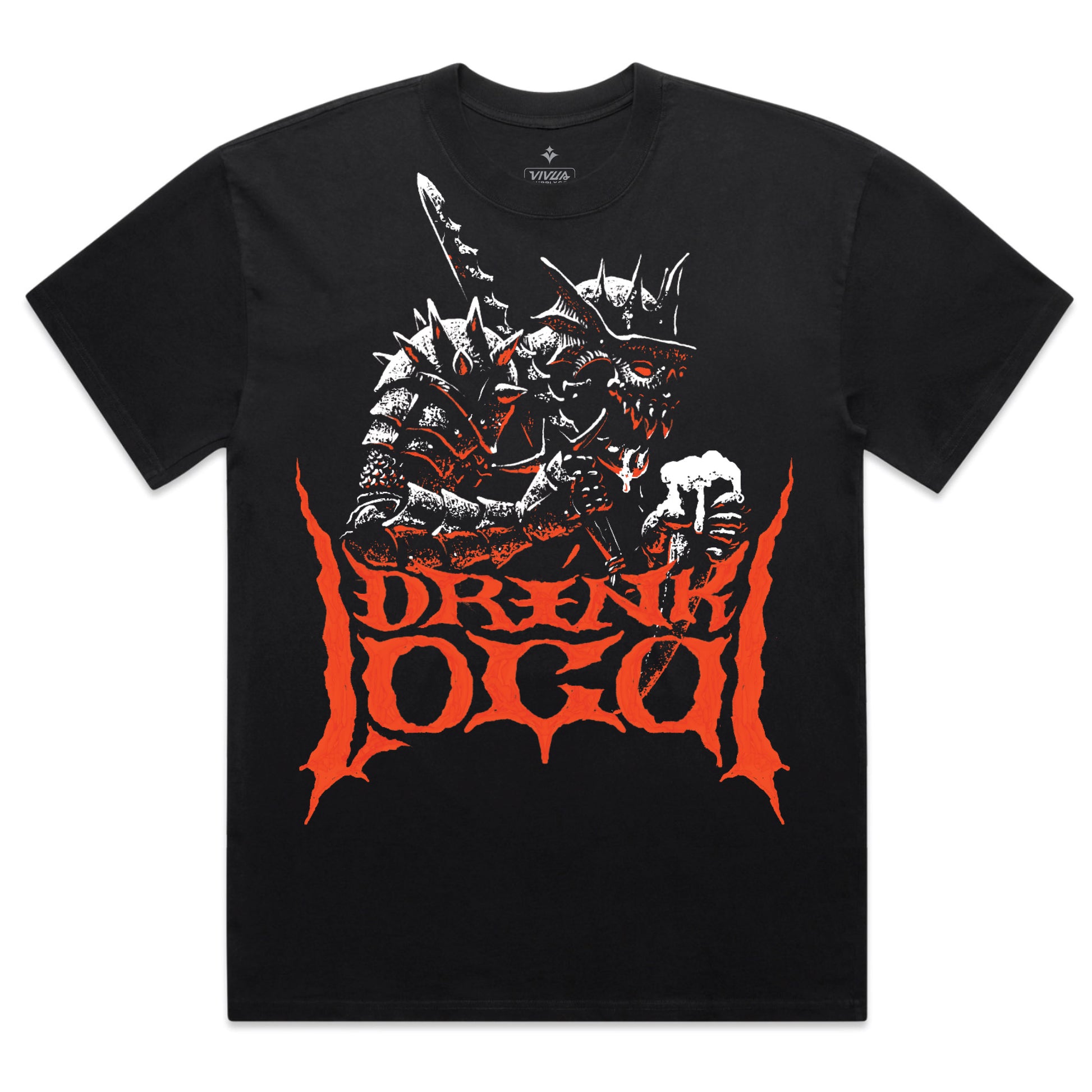 Big, bold, waterbased print on an oversized, relaxed fit, drop shoulder, heavyweight tee. Like something you'd get at some dark, diy music venue except the shirt feels like it will last through about a thousand percent more washes.